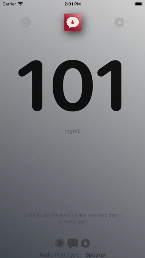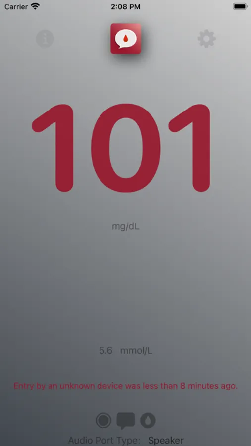 Foreground Mode: When the app is active and in use, you can customize its functionality by tapping the gear icon. It will audibly announce your latest blood glucose levels at your chosen frequency (e.g., every 30 seconds).