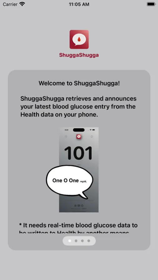 ShuggaShugga is an app designed to audibly update you with your latest blood glucose data, sourced directly from Health on your iPhone. While it's primarily intended to complement Loop.app and other similar apps, it's also useful for users who have live blood glucose values written to Health by other means, and to a lesser extent, those who manually input their blood glucose values into the Health app.