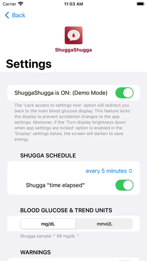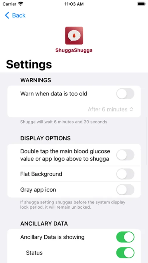 Please be aware: If you use a continuous glucose monitor and don't have additional methods for live updates in Health, the data in Health might be hours old due to regression analysis. In such cases, ShuggaShugga may not be suitable since it depends on the freshest data from Health.