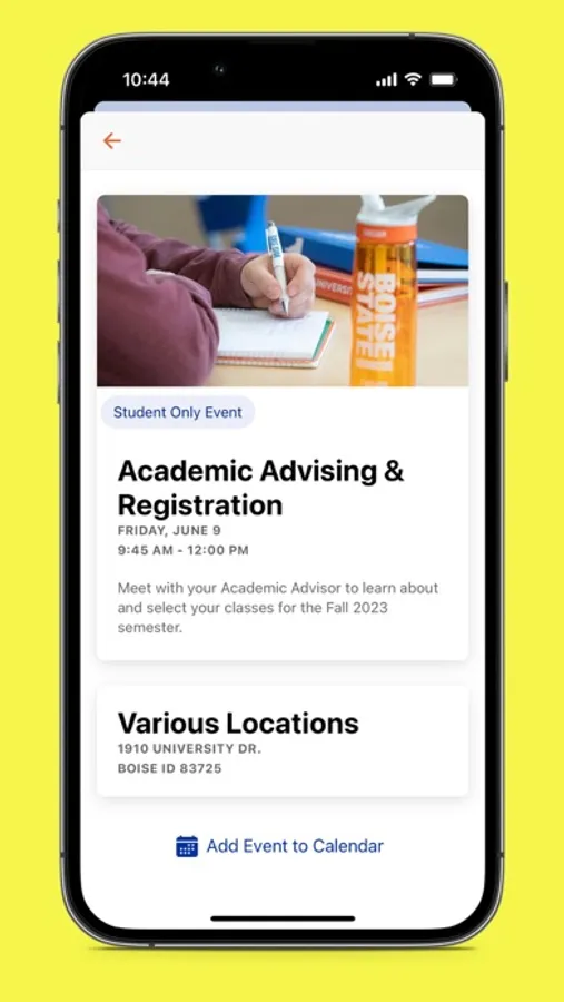 Boise State's Orientation mobile app is designed to help students and families navigate the orientation process. The app features a calendar with all the important orientation events, so students and their families can plan their schedule accordingly. By providing a centralized location for all orientation information, the app makes the orientation process smoother and more efficient for everyone involved.