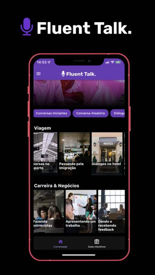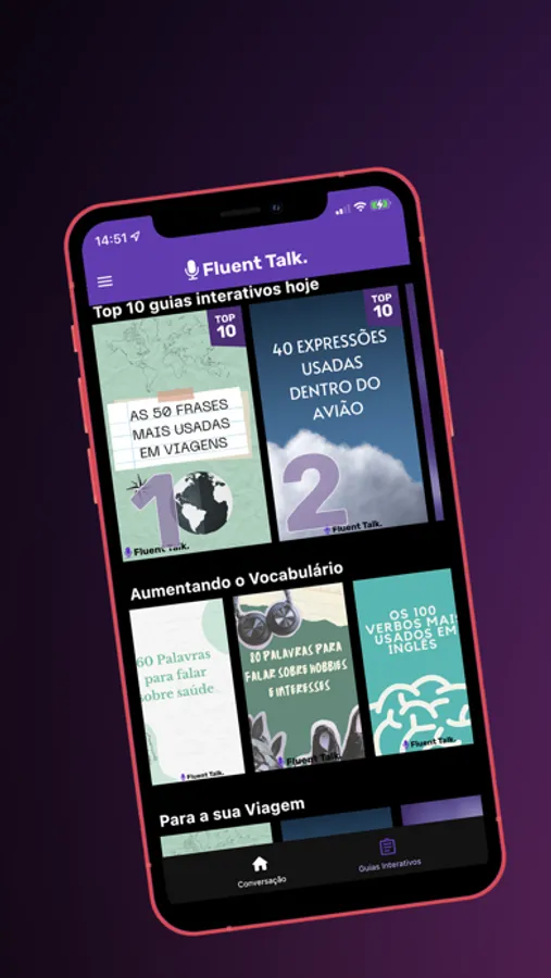 Criamos também algo novo no mercado, que chamamos de Guias Interativos. São como se fossem a evolução dos eBooks! Você poderá estudar, ouvir as frases, praticar a fala em inglês e ainda ser corrigido por uma inteligência artificial!