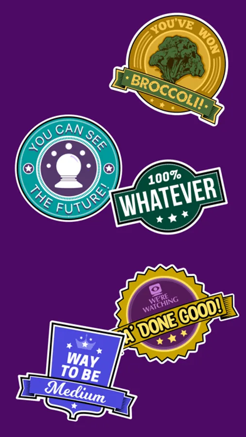 These badges can congratulate, be sarcastic, give useless winnings to your message mates, and even confuse!