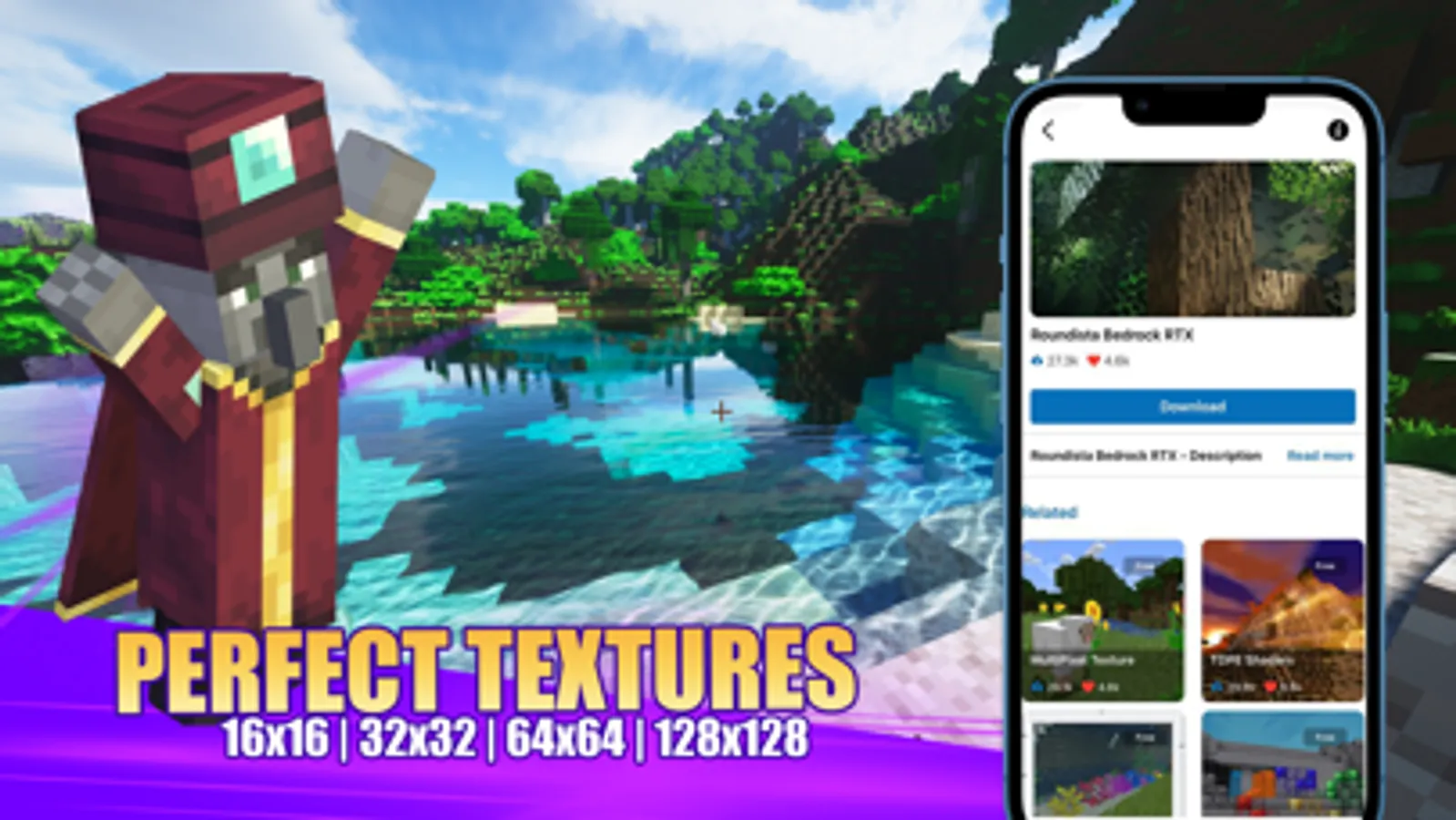 All textures for Minecraft in the application are completely free. We have selected the best Shaders and Texture Packs, a huge number of combinations. To download textures for Minecraft PE you need to click on the desired texture and click the download button. After that, the texture will be loaded into your texture packs application for Minecraft directly into the game.