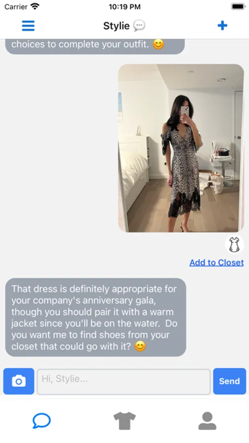 - Directly share images from your Closet to Stylie's chat. Discuss specific combinations and get feedback on your latest fashion finds.