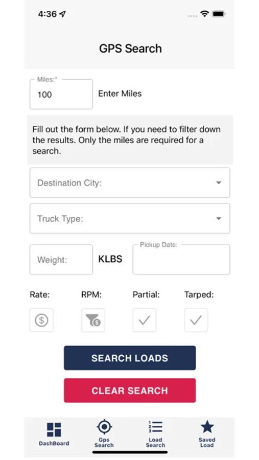 GPS Locate: Pinpoint your exact location and find loads within a 150-mile range. No more wasting time on irrelevant listings or long detours.