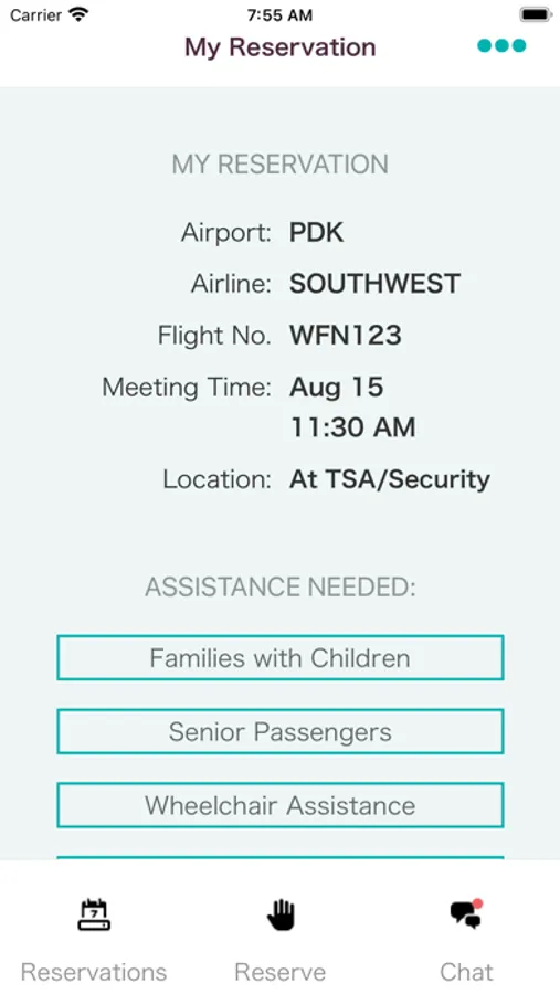 With the Travelsist app, you’ll be able to reserve Travelsist services with just a few taps. Make a reservation 4 hours before arriving at the airport, and a Travelsistant will meet you and provide exactly the type of assistance you requested.