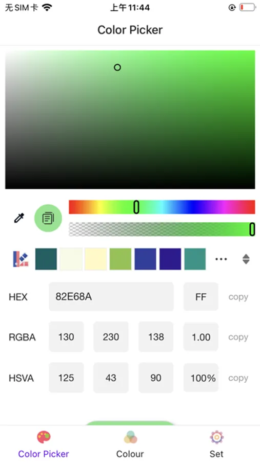 1. Color Picker and Palette: Multiple color formats such as RGB, CMYK, HEX, LAB, HSL, YUV, etc. can be selected by users by touching the color palette, or colors can be obtained through the following methods. Alpha color transparency drag and drop, input changes, and precise color palette switching.