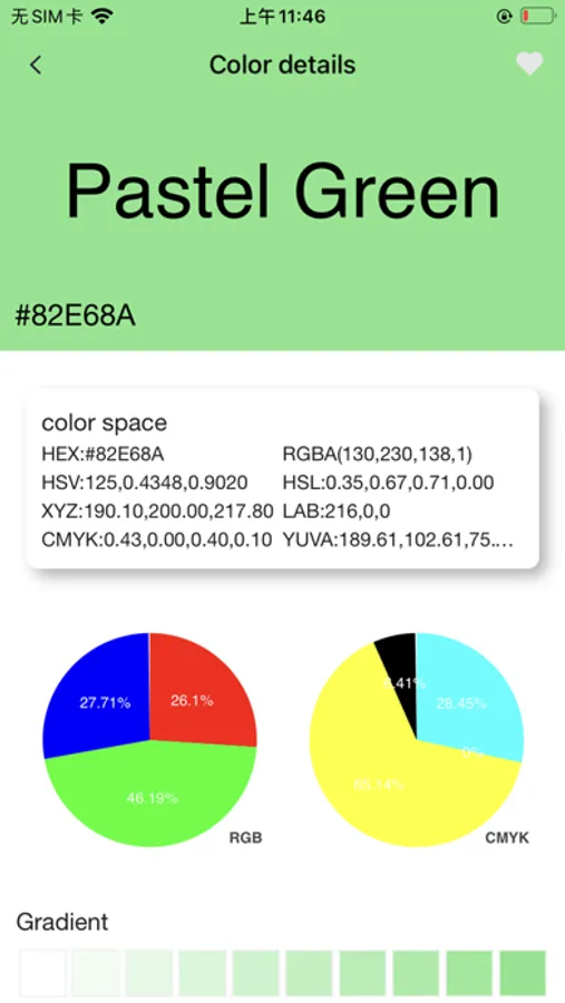 4. Color Details: Multiple formats of color details in the color space, supporting self-service conversion of gradient colors, complementary colors, contrasting colors, medium and poor colors, adjacent colors, similar colors, and similar colors. Support the resolution of three primary colors and CMYK. Supports automatic generation and preview of color schemes.