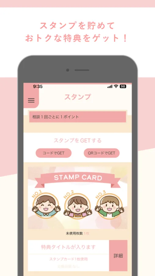 スタンプ:セッションごとにたまるスタンプカード。ためることでお得な特典もご用意しています。