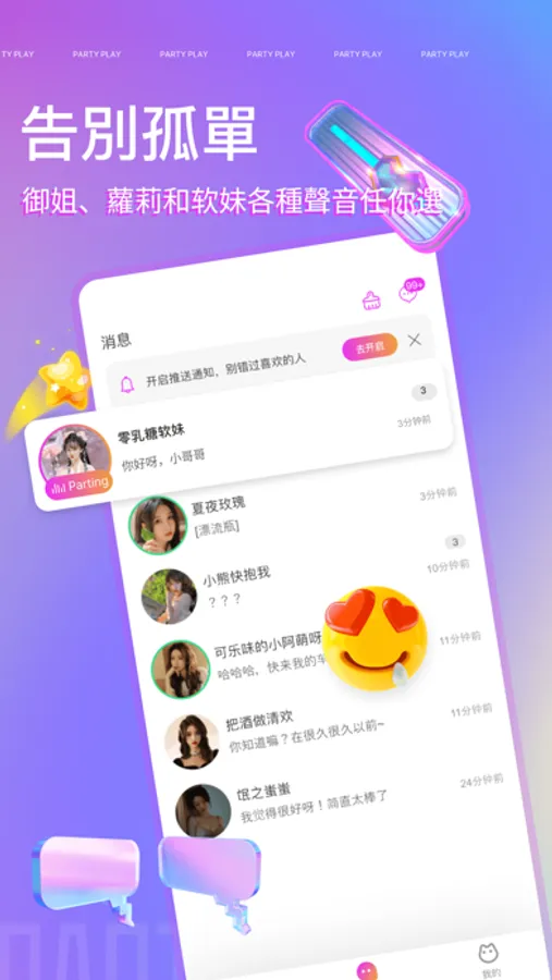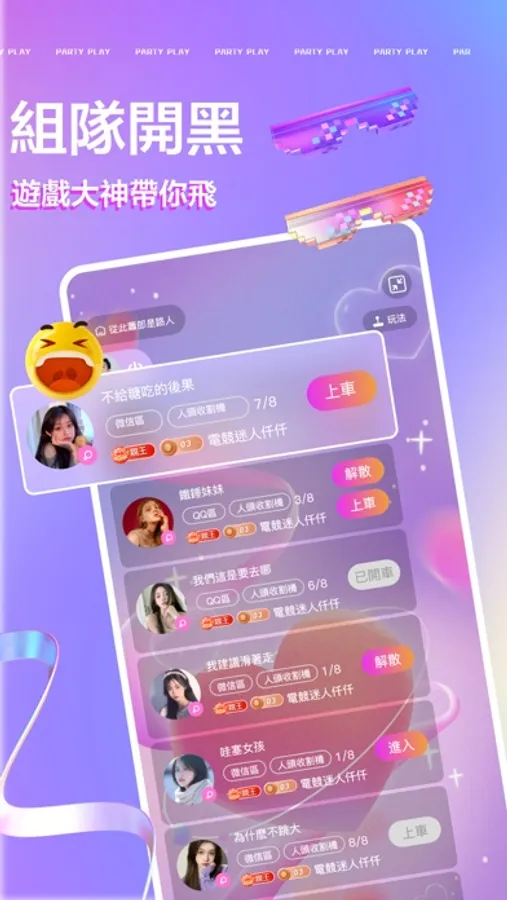 快來 PARTY PLAY和小哥哥小姐姐們一起互動,讓遊戲和生活更有趣,從此告別孤單!
