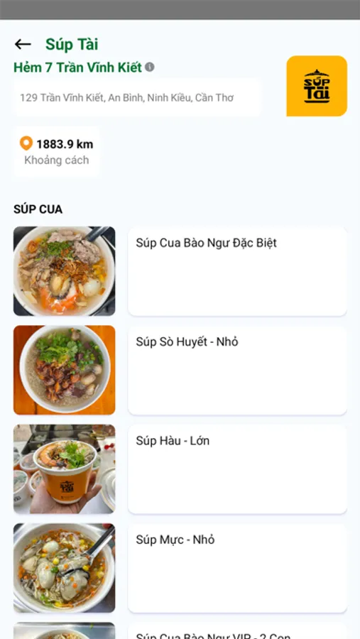 Sup Tai specializes in providing Crab Soup, Abalone, Vi Fish, all kinds of porridge such as Blood Clams Porridge, Crab Porridge, Seafood Porridge, Oyster Porridge,...with the best quality in Can Tho. We are constantly striving to bring the freshest products from the sea to consumers at the best prices.