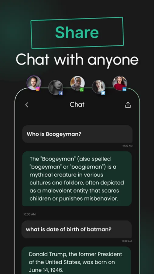 Disclaimer: This is not ChatGPT, this is a custom-built OpenAI's GPT-3 and GPT-4 model. This App uses the latest official and Public APIS from OpenAI & GPT-3 GPT-4 Technologies. This application is not endorsed by or affiliated with OpenAI. OpenAI, its name, trademark, and other aspects of the app are trademarked and owned by their respective owners.