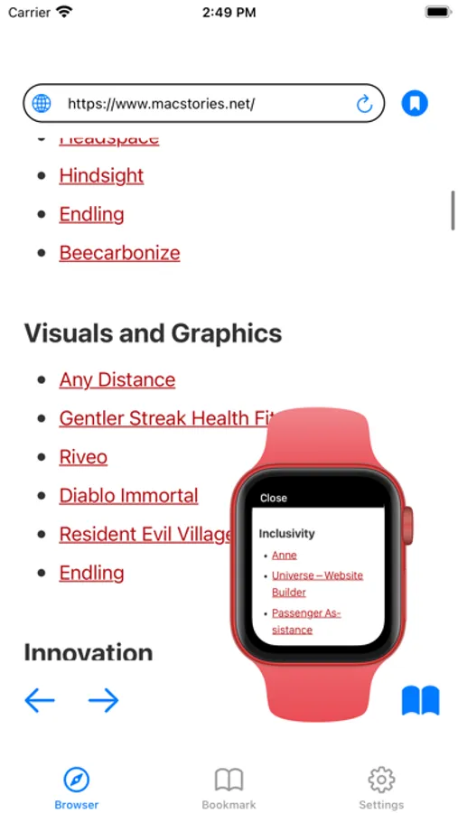 Bookmark your favorites: Save your most visited websites as bookmarks for instant access. Quickly jump back to your go-to sites with just a tap on your Apple Watch.