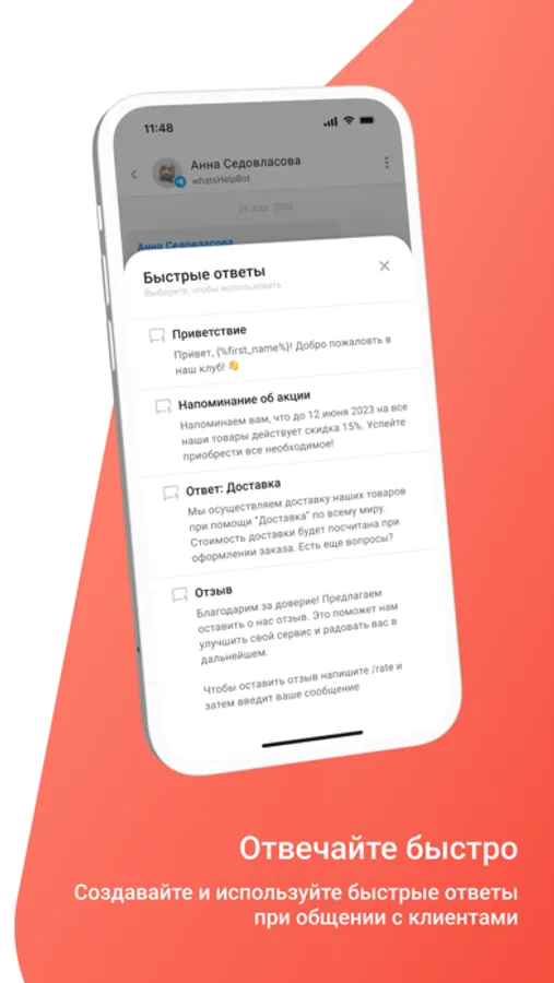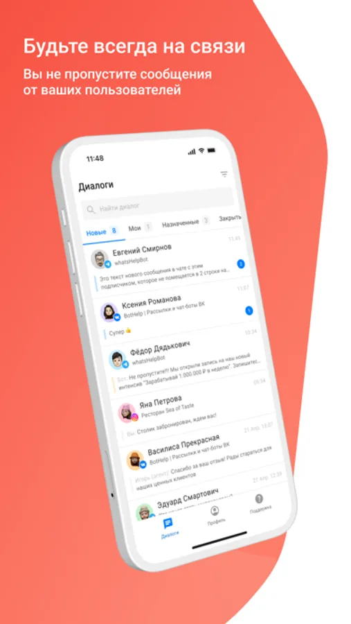 Собирайте и сегментируйте вашу аудиторию в мессенджерах при помощи чат-бота. Отправляйте полезный контент и специальные предложения с фантастической открываемостью сообщений до 80%.