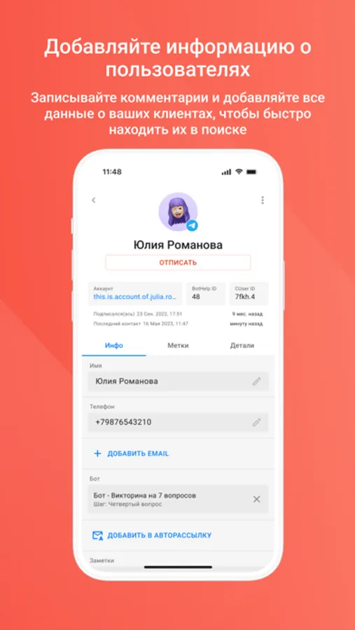 Конвертируйте холодный трафик из социальных сетей в подписчиков с конверсией до 70% и собирайте e-mail и телефон клиентов прямо в мессенджере. Полностью автоматически без ручных переписок.