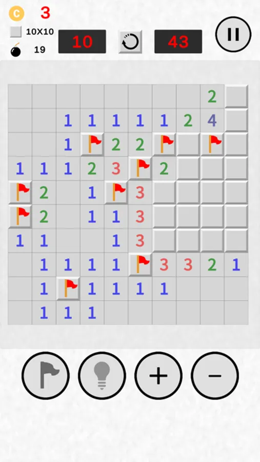 Identify and avoid mines based on the numbers that represent the number of mines around you!