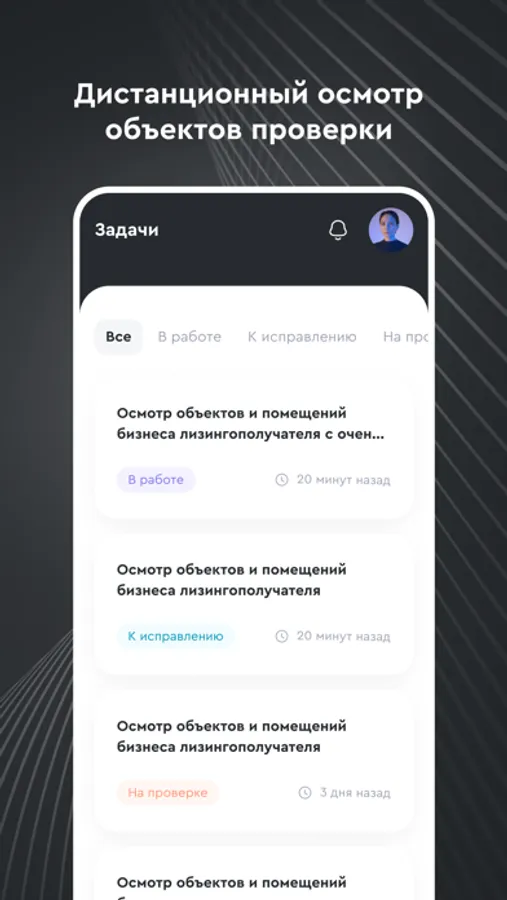 Онлайн осмотр объекта – программно-технический сервис, предназначенный для осуществления удалённого осмотра инфраструктурных объектов бизнеса, получения фотокопий первичных финансово-хозяйственных документов, а также идентификации должностных лиц, собственников и иных представителей лизингополучателя.
