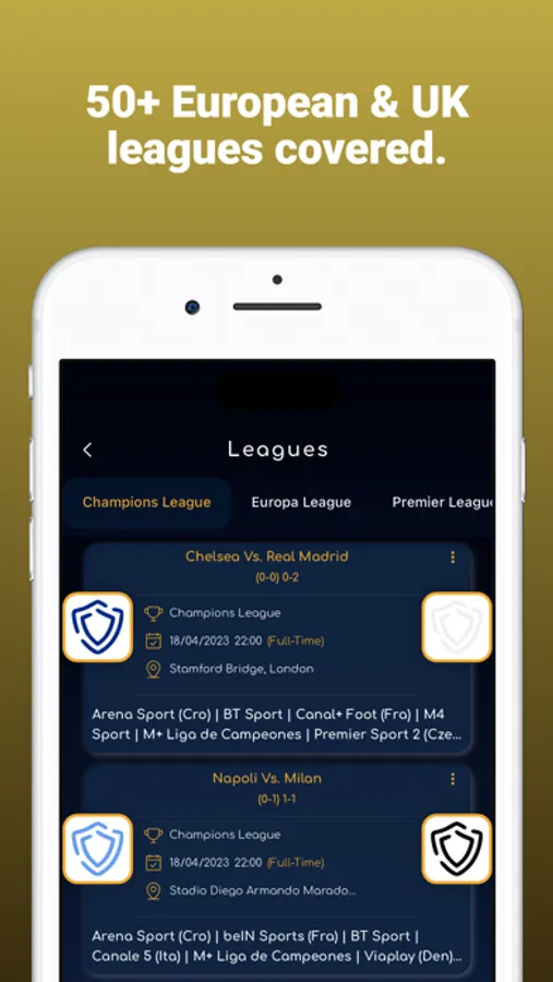 Our soccer match On TV app guide is updated in realtime. Our goal is to bring you the best guide possible to schedule all the football events you plan to watch with our live football schedule app.