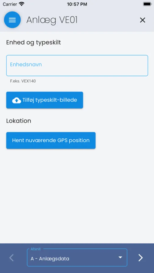 Brug appen til at tage billeder af anlæggets typeskilt, og dets lokation - så kan du let finde vej til anlægget næste gang.