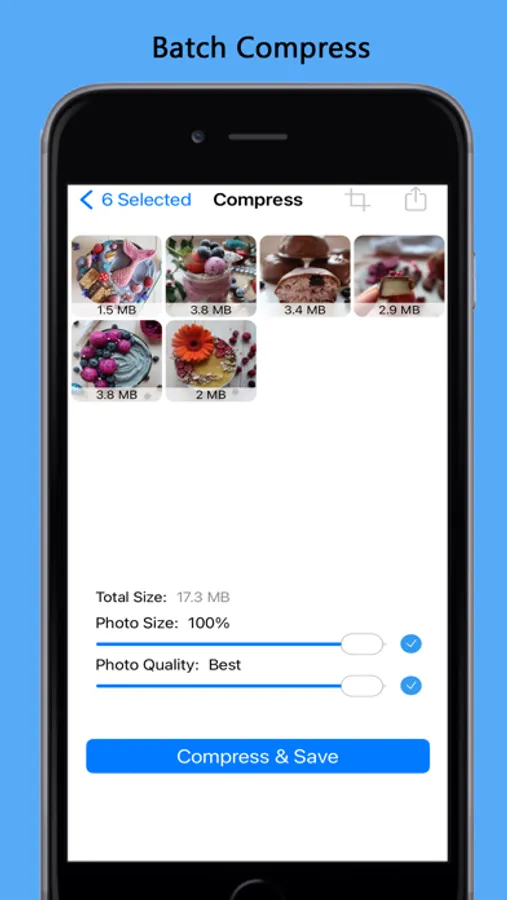 Use Compress Photos+ to resize and compress your photos to save space on your device
