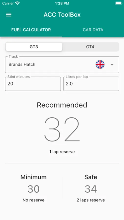 Enter a car class, track, and stint length to get a estimate of how much fuel to add to the tank.
