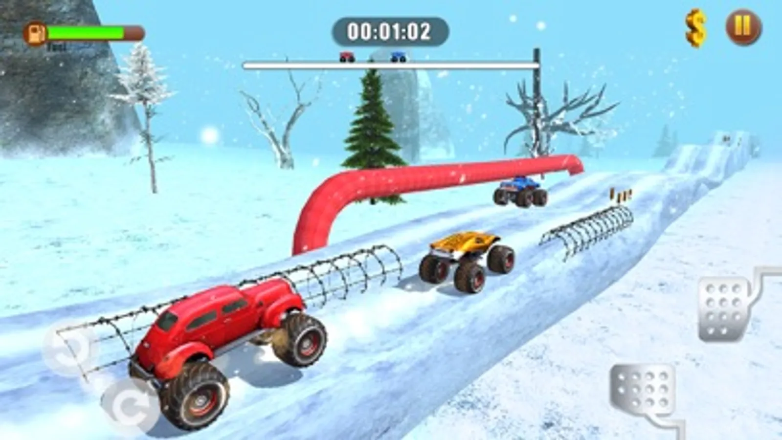 With realistic controls, dynamic weather environments, and an open world of mountainous roads, each level brings new challenges to overcome. Choose your favorite monster truck, master the terrain, and unlock new vehicles by winning races and collecting coins.