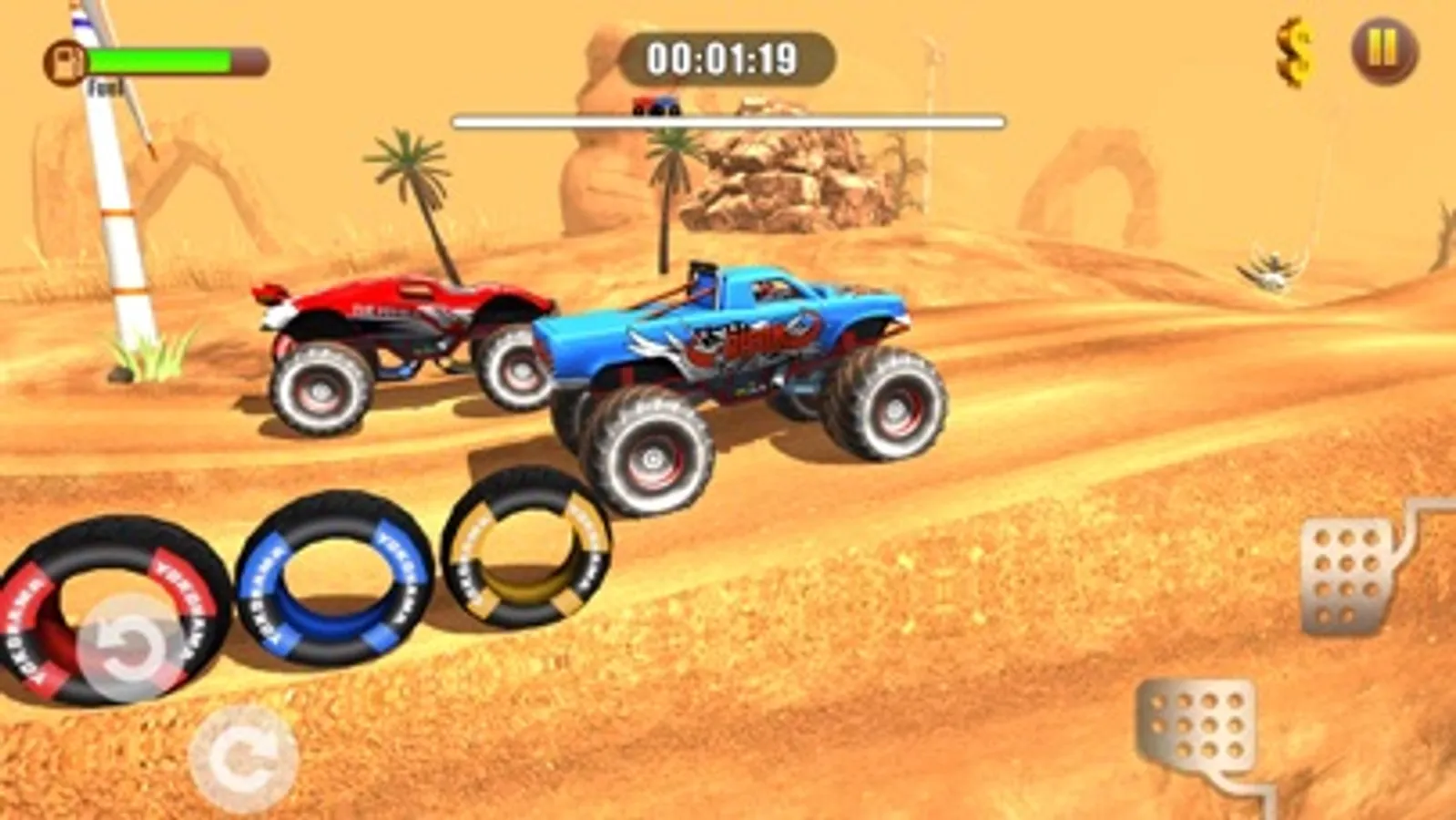 - Collect coins and fuel along the track — don’t run out!