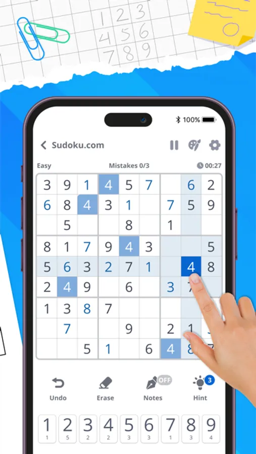 6 difficulty levels with a smooth progression, suitable for all Sudoku players. Beginners can quickly improve by following the difficulty levels, while advanced players can enjoy more challenging puzzles.