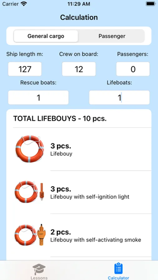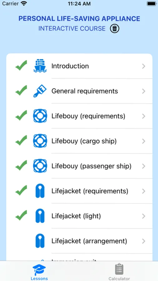 With this app you will pass the course on personal life-saving appliances. The course is based on the requirements of SOLAS and LSA Code. There are 12 lessons in the course. After each lesson you will pass the test. At the end of the course, you will understand all requirements for personal life-saving appliances. As a bonus to the course, the app has a built-in rescue equipment calculator. Based on the type of vessel, the number of crew and boats, the application will generate the minimum required number of personal life-saving appliances.