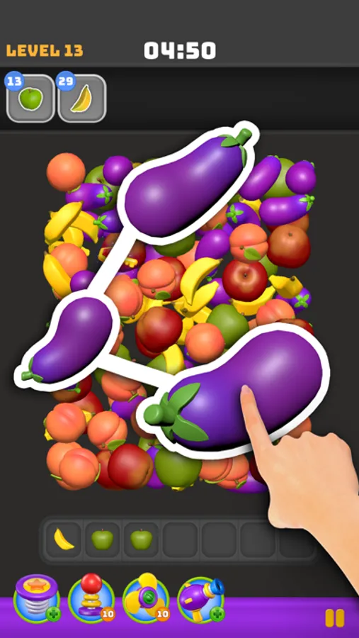 Use power-ups to help you sort through the objects and pass tricky levels.