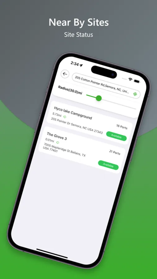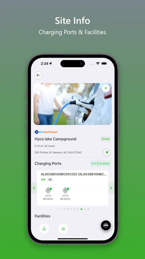 - Details Site Info Screen: You can view detailed information about charging stations, including location, Availability, Amenities, Pricing, Opening times and more.