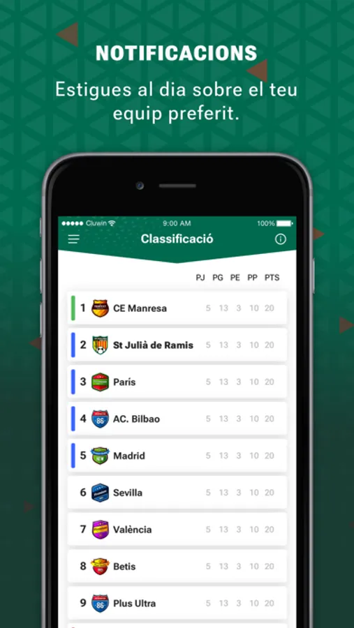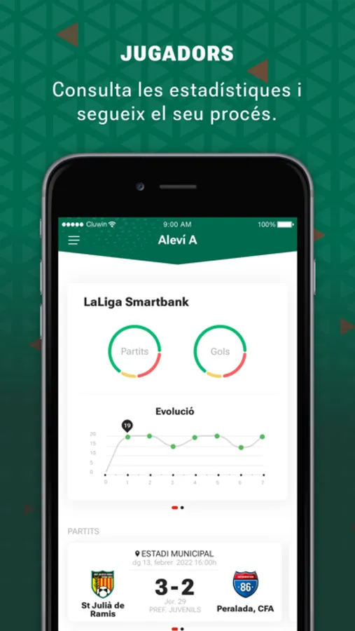 ● Jugadors: Descobreix més sobre els jugadors, consulta les seves estadístiques i segueix el seu progrés al llarg de la temporada.