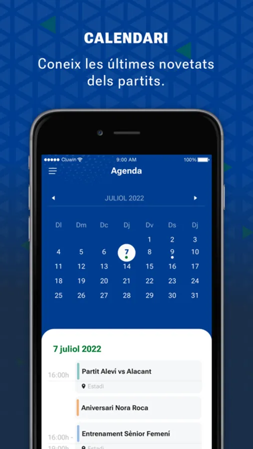 ● Calendari: Mantingues-te al dia amb les últimes novetats dels partits, esdeveniments i competicions.