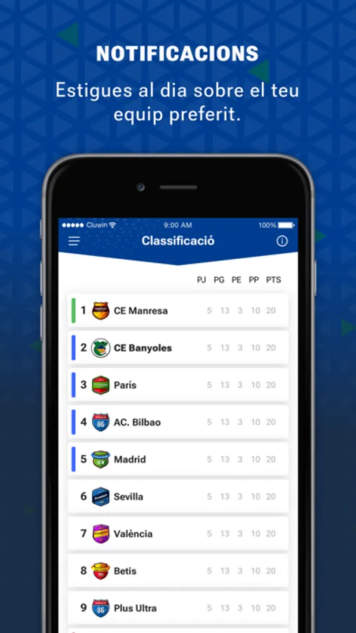 ● Jugadors: Descobreix més sobre els jugadors, consulta les seves estadístiques i segueix el seu progrés al llarg de la temporada.