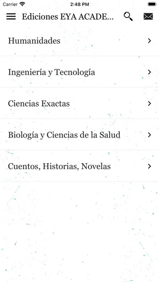 En al categoría de libros, contamos con las secciones de humanidades, biología, ciencias de la salud, ciencias exactas, ingeniería y tecnología.