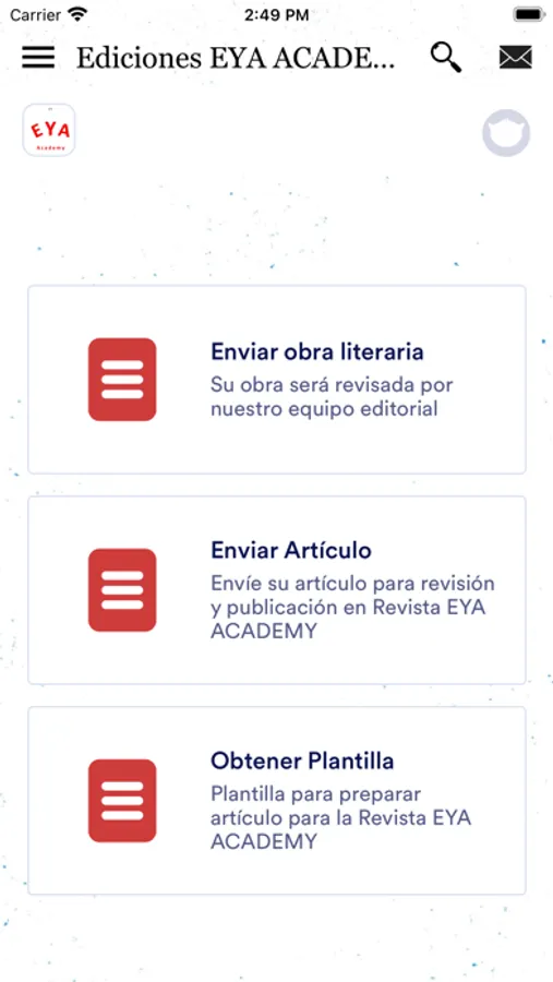 También puedes solicitar publicar tus propias creaciones literarias y artículos científicos, nuestro equipo editorial se asegurará de revisar y acompañarte en el proceso de cuatro pasos, para asegurar que tu obra se publique con la calidad que nos caracteriza.