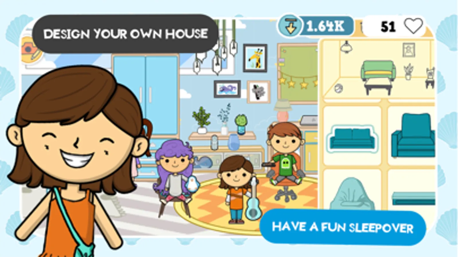 - Endless Possibilities: Fuel your imagination with an extensive collection of existing artwork, including home design scene packs, a grocery store pack, and outdoor scene packs featuring Beach and Park themes. Combine and arrange these assets to design your perfect scenes, and watch your vision come to life in Lila's World.