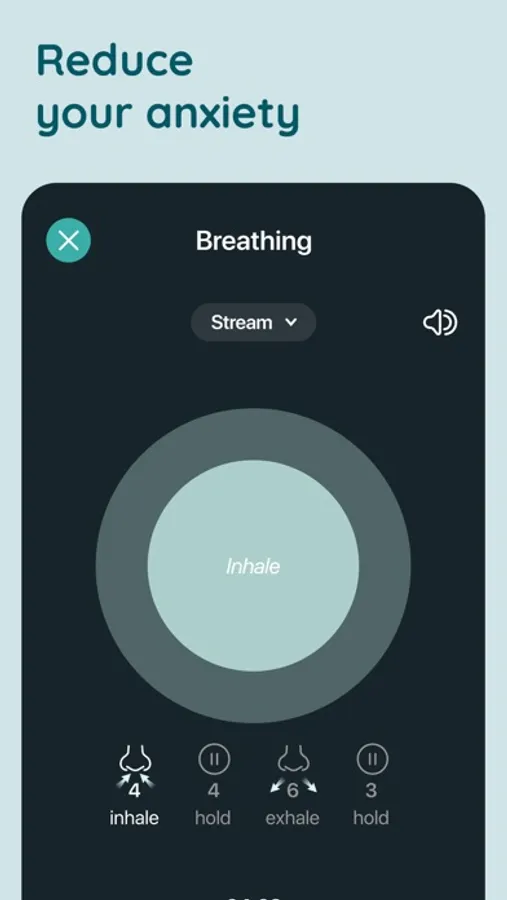 • Breathing exercises to manage stress and anxiety with calming background sounds