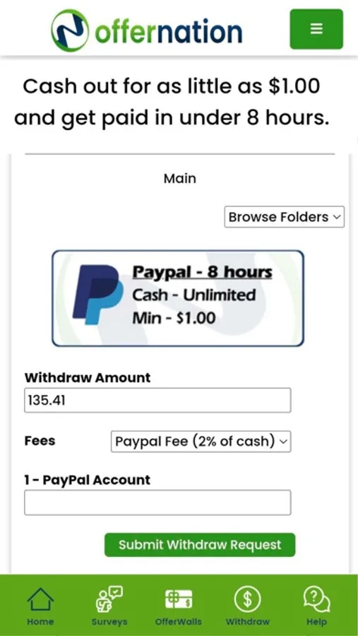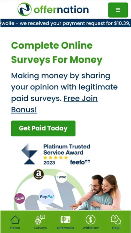 What sets Offernation.com apart from other survey platforms is its fast payments process. Once you've accumulated the minimum payout threshold, you can easily withdraw your earnings through multiple payment options like PayPal, Skrill, or even Amazon gift cards. This means you'll be able to enjoy the fruits of your labor quickly, without any unnecessary delays. With Offernation.com, making money online has never been more efficient and convenient.