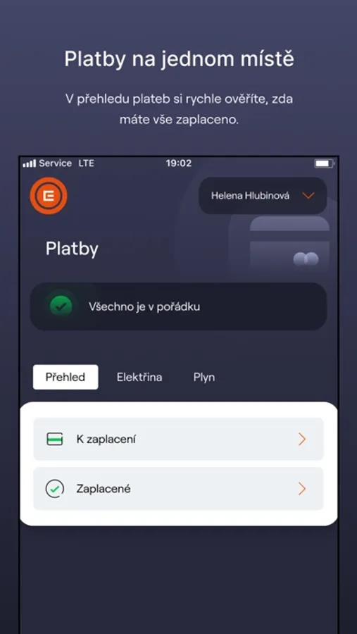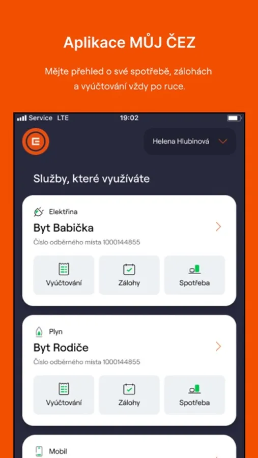 Už nemusíte chodit na pobočku nebo volat na zákaznickou linku. V aplikaci najdete informace o všech platbách i zálohách včetně těch, které jsou před vámi. Zálohy si tu můžete upravit nebo rovnou zaplatit online. Stejně tak vyúčtování. Ta v aplikaci najdete uložená všechna na jednom místě, takže už nic nemusíte tisknout a zakládat do šanonů.