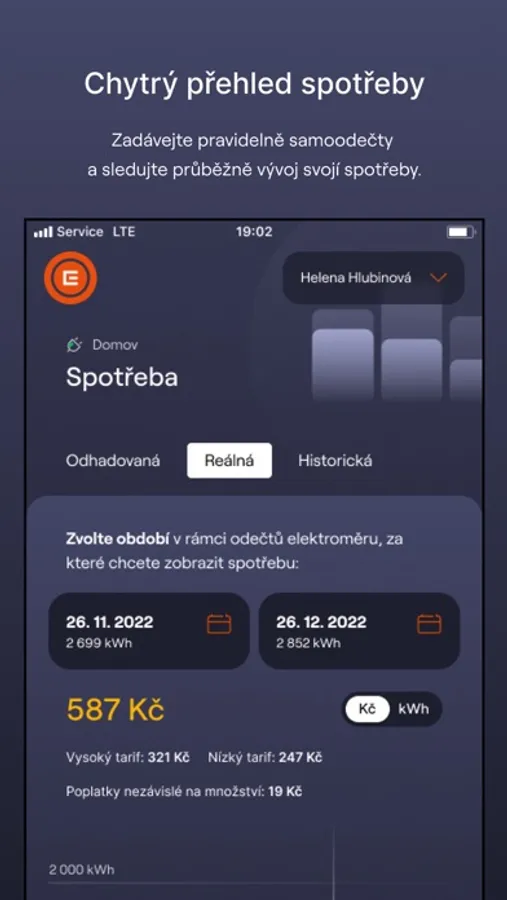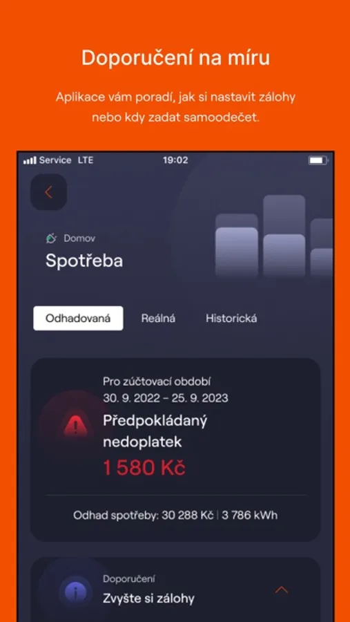 Snadno tu zadáte samoodečet. Můžete tak sledovat svou reálnou spotřebu. Díky pravidelnému zadávání zjistíte, jestli máte zálohy správně nastavené tak, aby vás nepřekvapil nedoplatek. Aplikace vám vypočítá, jak přibližně dopadne vaše vyúčtování.
