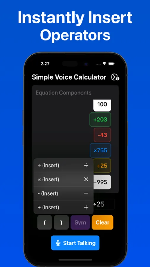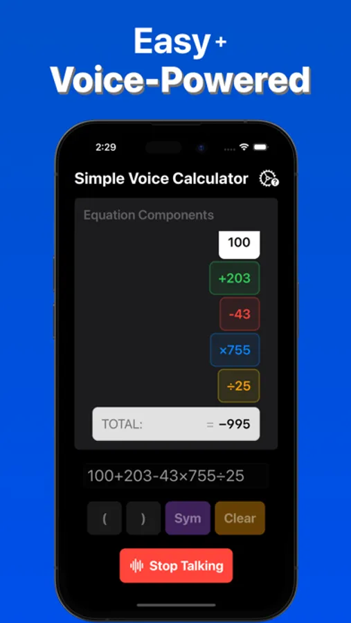 ◉ Instant Solutions: No equals button needed. Simple Voice Calculator shows results in real-time as you input or edit equations.