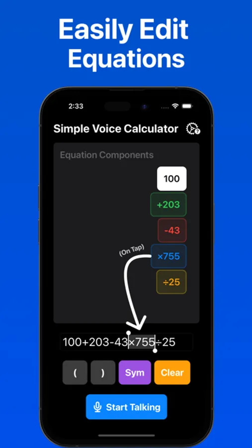 Simple Voice Calculator is not your average calculator. It's a tool that understands you, streamlines your calculations, and delivers instant results. The intuitive interface allows for quick editing of equation components, making it ideal for complex or fast-paced calculations.