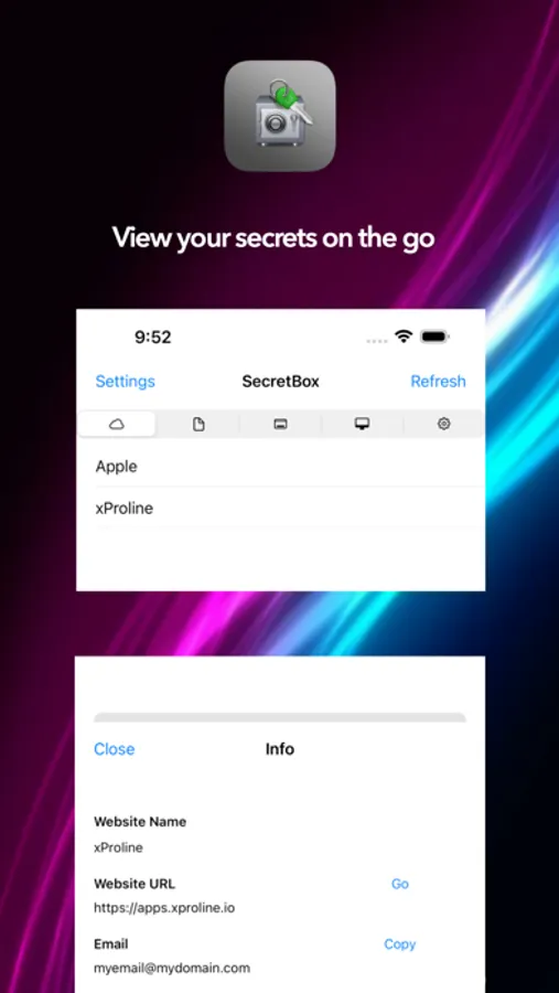 The app is using the secure online backup of the desktop version to view your secrets on the go.