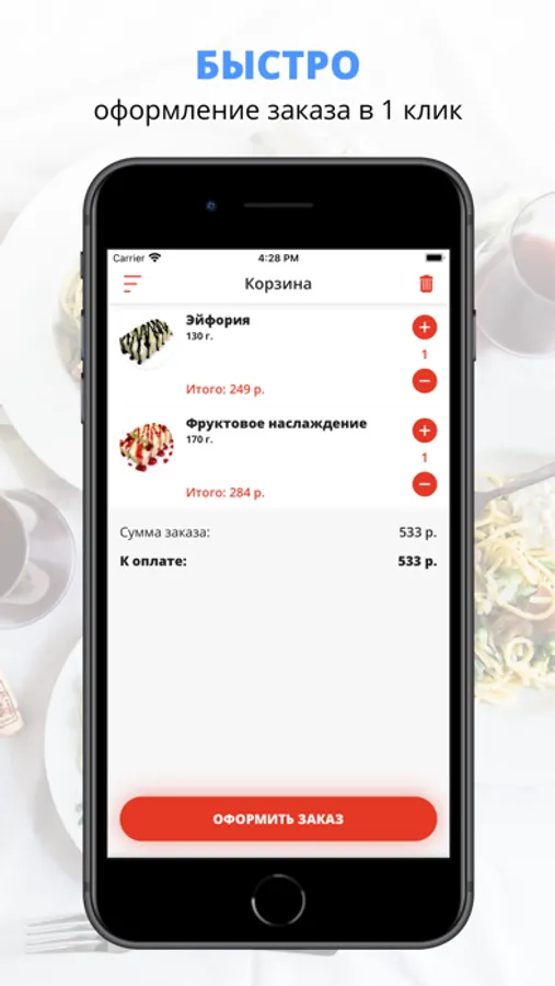 Скачивайте наше приложение, оформляйте заказ и наслаждайтесь любимой едой, где бы Вы ни были! Приятного аппетита!