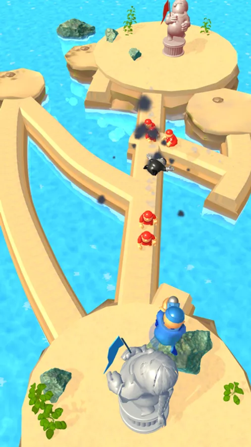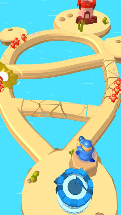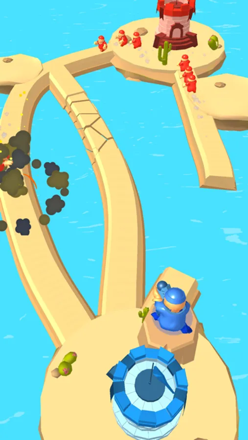 Shoot all your enemies before they reach and destruct your tower, break roads to prevent enemies coming.
