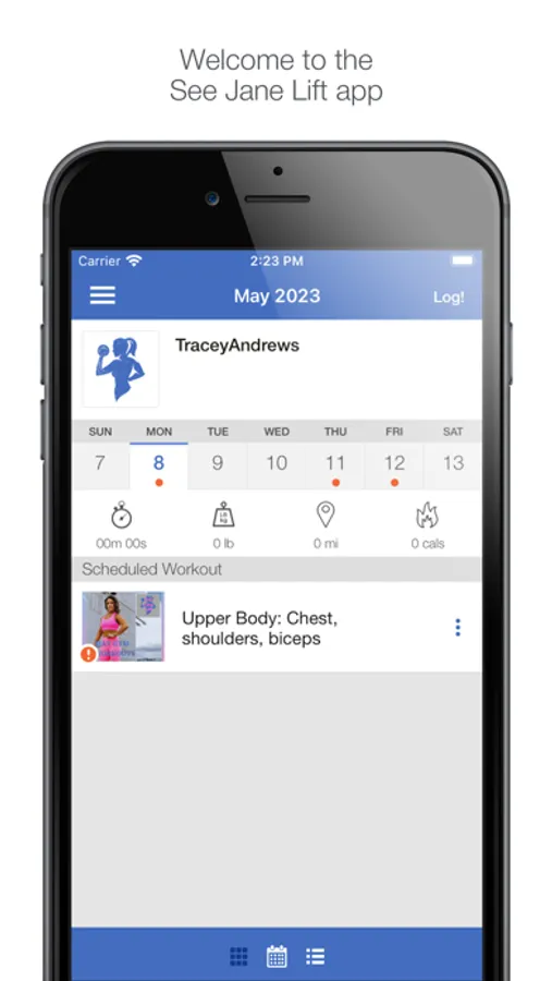 Log your See Jane Lift workouts from anywhere with the See Jane Lift workout logging app! View your logged workouts, see upcoming scheduled workouts, and book appointments inside the app. Track your progress and get the most out of your See Jane Lift workouts!