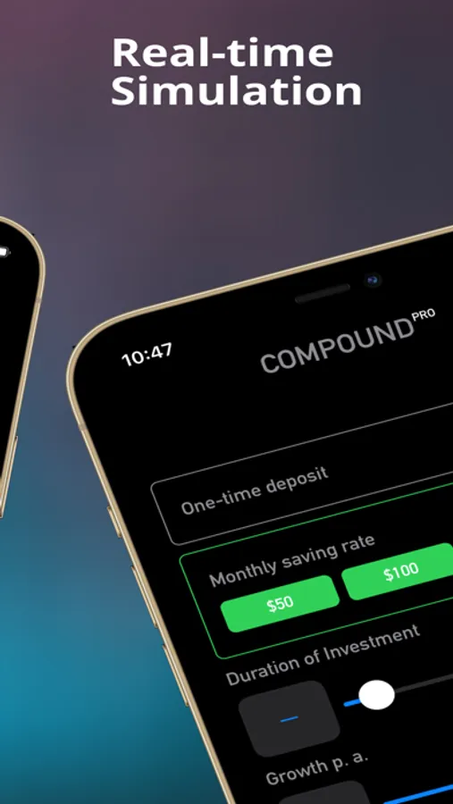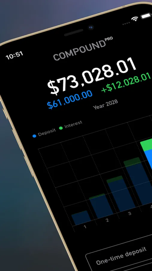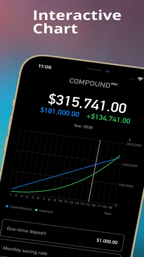 - Interactive Chart to visualize the investment growth vs. the deposits as line and bar chart