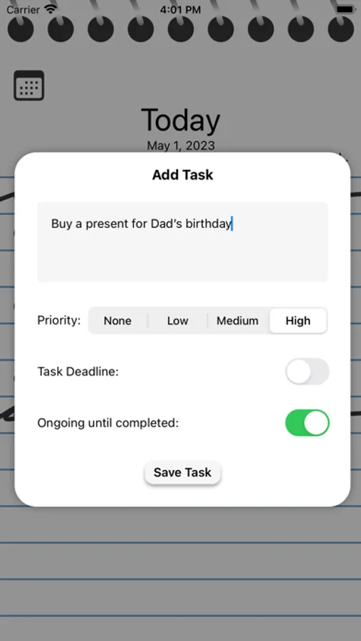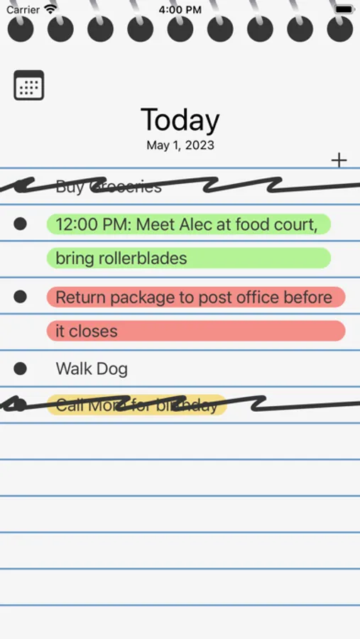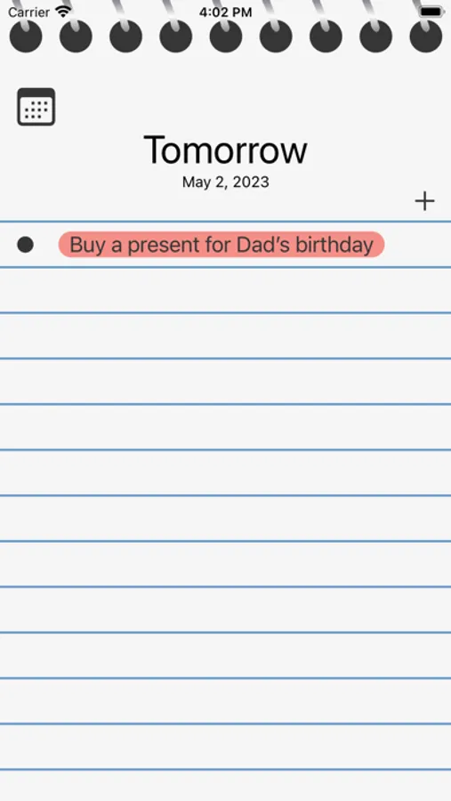 This is a MemoBook App that allows users to easily track daily tasks that need to be done and those that have already been completed. American author Simon Sinek often emphasizes the importance of writing down goals to incentivize ourselves to meet them and be rewarded by the following Dopamine. The UI in this application is meant to resemble that of a memo book page to achieve the simplicity and feel of the low-tech alternative.