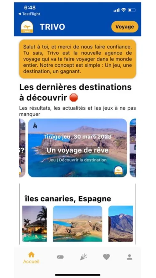Trivo est une agence de voyage nouvelle génération. L'application propose aux utilisateurs de voyager dans de nombreuses destinations grâce au financement participatif.